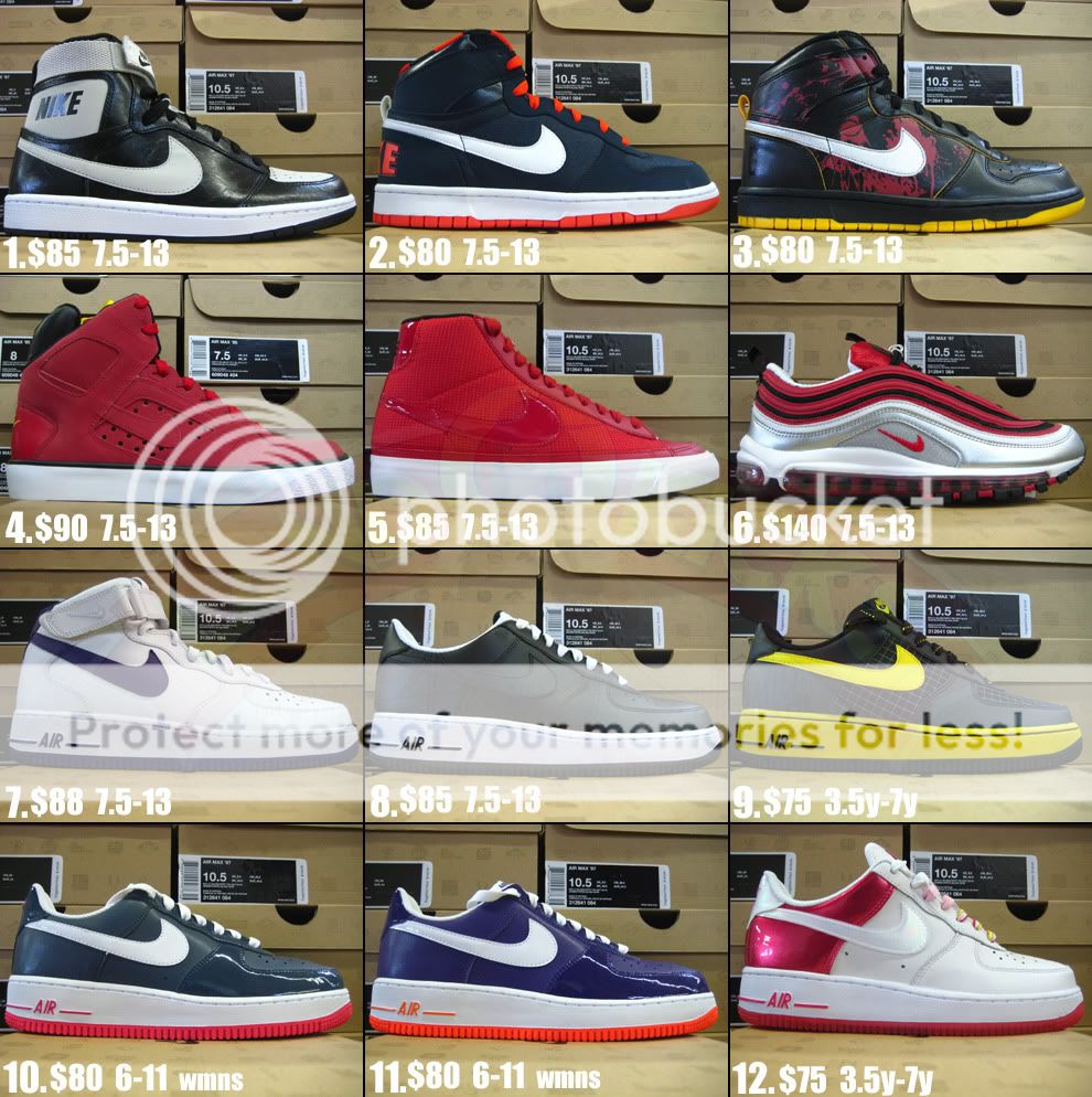 a few mens Big Nike & Air Force 1's, mens Blazer, mens Air Max '97, Nike Auto Flight ... hit me at LandOKicks@hotmail.com with size and number needed - thanks for looking and enjoy your week