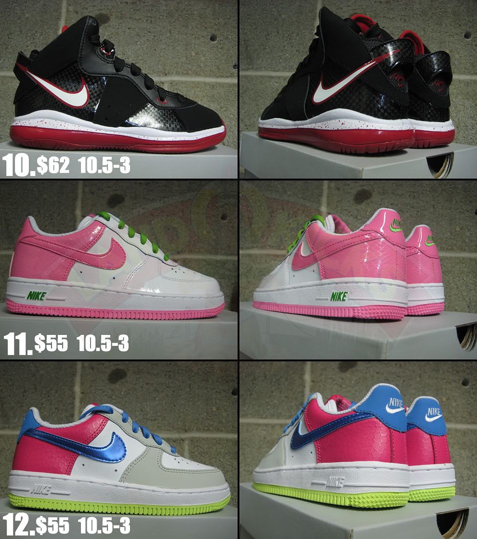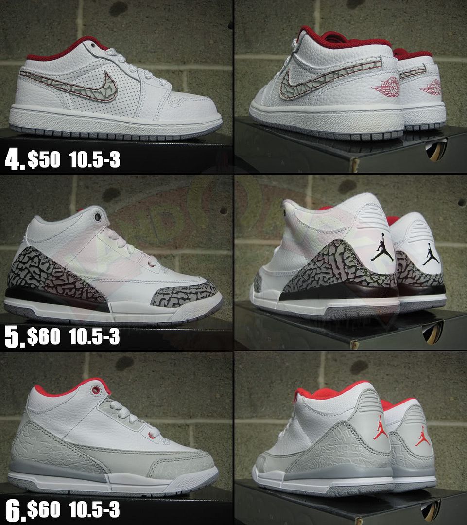I've been getting alot of emails if I have sizes for the lil'ones and ive always have just never really blasted them out, until now!! All sneakers are pre-school sizes, if needed please email with the number and sizes needed at